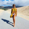 Een pareo of omslagdoek is de uitkomst om deze over je bikini om te toveren tot een leuke jurk.