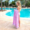 Maak je gebruik van een strandbed? Dan is onze populaire beachbed cover Three Palms een ideale oplossing. Deze stranddoek sla je eenvoudig om het hoofdeinde van het strandbed, waardoor de doek niet wegwaait.