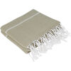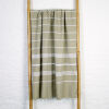 De Ottomania mooi gestreepte hamamdoeken in de kleur olijfgroen zijn gemaakt van hydrofiel katoen waardoor ze zeer goed vocht opnemen. Deze lichtgewicht hamamdoek is ideaal als strandhanddoek, op reis, op de boot, naar het zwembad, sportschool of de sauna. De doek kan zeer compact worden opgevouwen en weegt maar 250 gram. Bovendien is de hammamdoek snel droog en goed te wassen. Daarom ideaal voor in de koffer, rugzak of strandtas. Prima te gebruiken als strandlaken of op een ligstoel.
