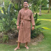 De wafel badjas in de kleur koper heeft een tijdloze en rustige uitstraling die in iedere badkamer of wellnessomgeving past. De ceintuur in de taille en de praktische zakken zorgen voor extra gemak en draagcomfort. De pasvorm is unisex, waardoor deze badjas een uitstekende keuze is voor zowel mannen als vrouwen.
